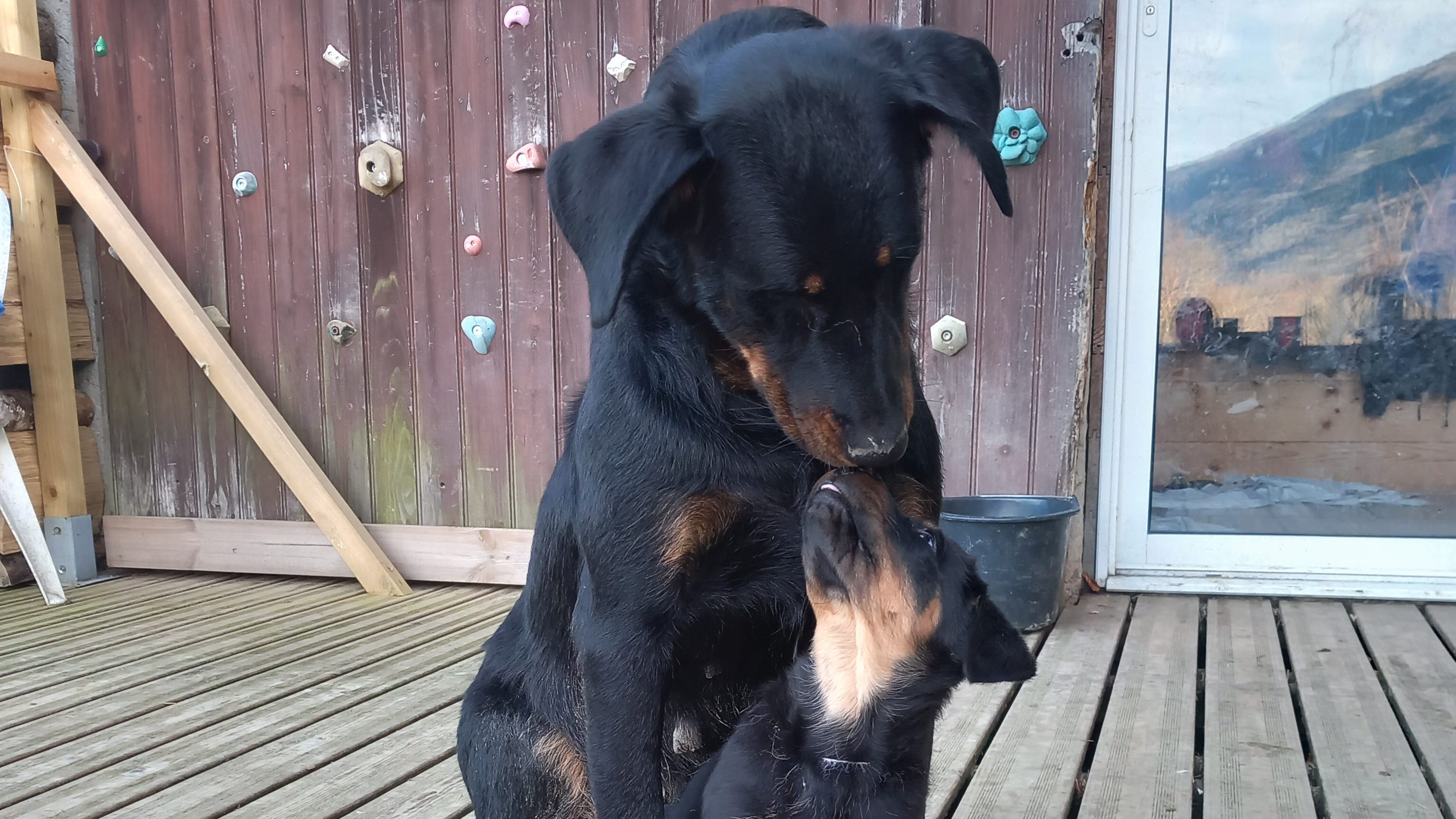 Et elles ce sont Toscane et Vagabonde, mes 2 Beauceronnes, qui sont mère et fille. Elles sont toutes les 2 des chiennes très équilibrées et elles se feront un plaisir de rencontrer votre chien s’il aime les contacts avec ses congénères.